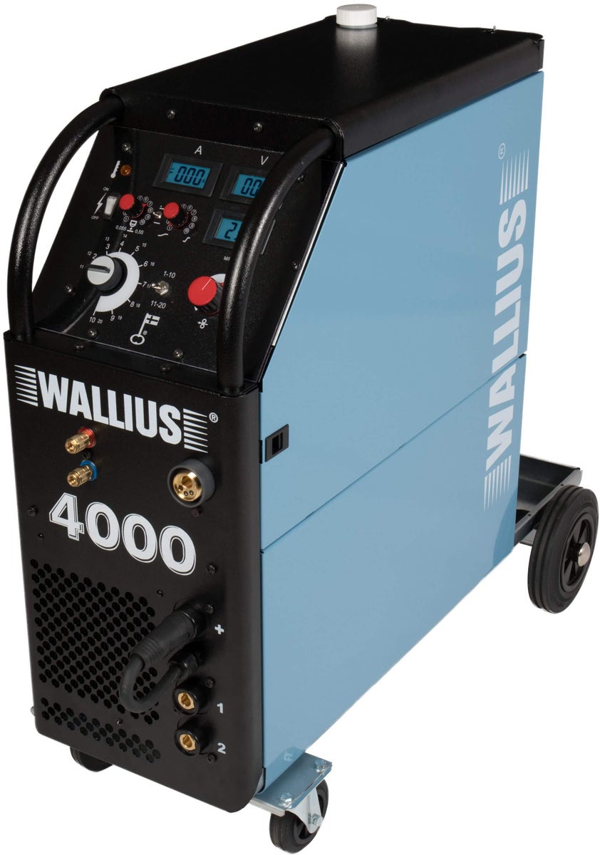 Wallius® BLUEWELD™ 4000 MIG on tehokas 400 A:n maksimivirralla ja sisäänrakennetulla vesijäähdytysyksiköllä varustettu kompaktikokoinen hitsauskone.