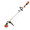 Robota 18V kevytraivaussaha kolmella eri terällä.Kone on suunniteltu vaativaan siistimiseen ja leikkaamiseen, olitpa sitten hoitamassa nurmikon reunat tai raivaamassa tiheämpää kasvustoa. Laite tarjoaa voimaa, ergonomiaa ja joustavuutta yhdessä paketissa – kaikki akkuvirran helppoudella. Laite on käytännössä trimmeri ja keveä raivaussaha samassa paketissa.Kolme erilaista leikkuupäätä eri tarpeisiinTrimmerin mukana toimitetaan kolme vaihdettavaa leikkuupäätä:Siimapää kevyeen siistimiseen, esimerkiksi heinikkoonKolmioterä tiheämpään ja vahvempaan kasvillisuuteenTeräsharjalaikka sitkeämpään ja pinttyneeseen kasvustoon kuten horsmikkoonNäin sama laite mukautuu moneen käyttötarpeeseen ilman erillisiä koneita.Ergonominen rakenne ja säädettävä kahvaKäsikahvan paikkaa ja kulmaa voidaan säätää, mikä takaa miellyttävän työasennon ja vähentää rasitusta pidemmässäkin käytössä. Kevyt rakenne ja pitkä runko parantavat hallittavuutta ja ulottuvuutta.Tekniset tiedotJännite: 18 VNopeus ilman kuormitusta: 7000 rpmLeikkuuleveys: 230 mmRungon pituus: 1500 mmPaino: 4,5 kgMukana: Siimapää, kolmioterä ja teräsharjalaikkaHuom: Akku ja laturi myydään erikseen.